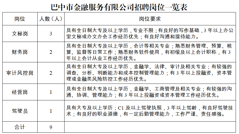 關(guān)于招聘巴中市金融服務有限公司工作人員的公告