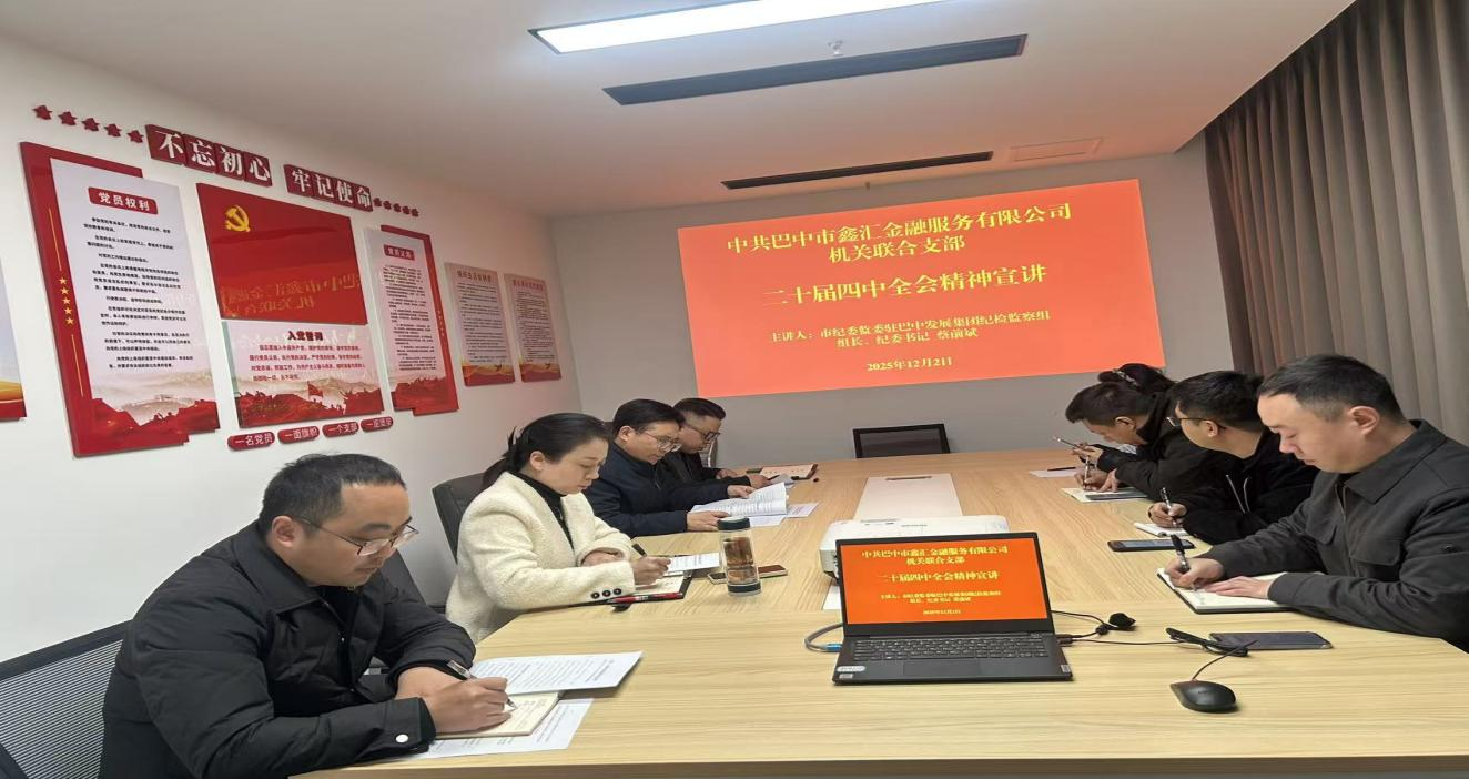 為深入學(xué)習(xí)宣傳貫徹黨的二十屆四中全會(huì)精神,推動(dòng)理論指導(dǎo)與實(shí)踐融合,12月2日,市紀(jì)委監(jiān)委駐巴中發(fā)展集團(tuán)紀(jì)檢監(jiān)察組組長(zhǎng)、集團(tuán)紀(jì)委書記蔡前斌到金服公司機(jī)關(guān)聯(lián)合支部專題宣講黨的二十屆四中全會(huì)精神,并就下一步工作提出指導(dǎo)意見(jiàn)。