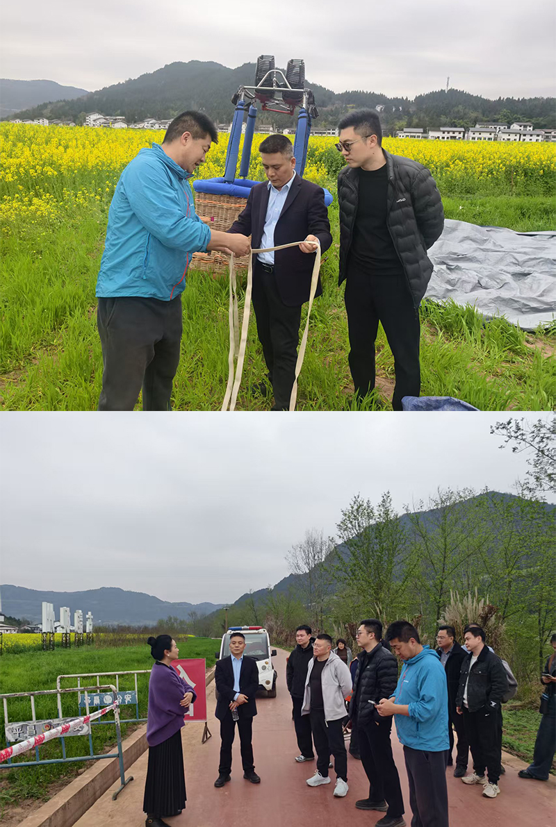 3月6日,集團(tuán)黨委副書記、副董事長(zhǎng)李斌帶隊(duì)前往平昌縣白衣古鎮(zhèn),對(duì)熱氣球飛行體驗(yàn)項(xiàng)目開展安全生產(chǎn)檢查。集團(tuán)黨委副書記、總經(jīng)理沈鵬陪同。